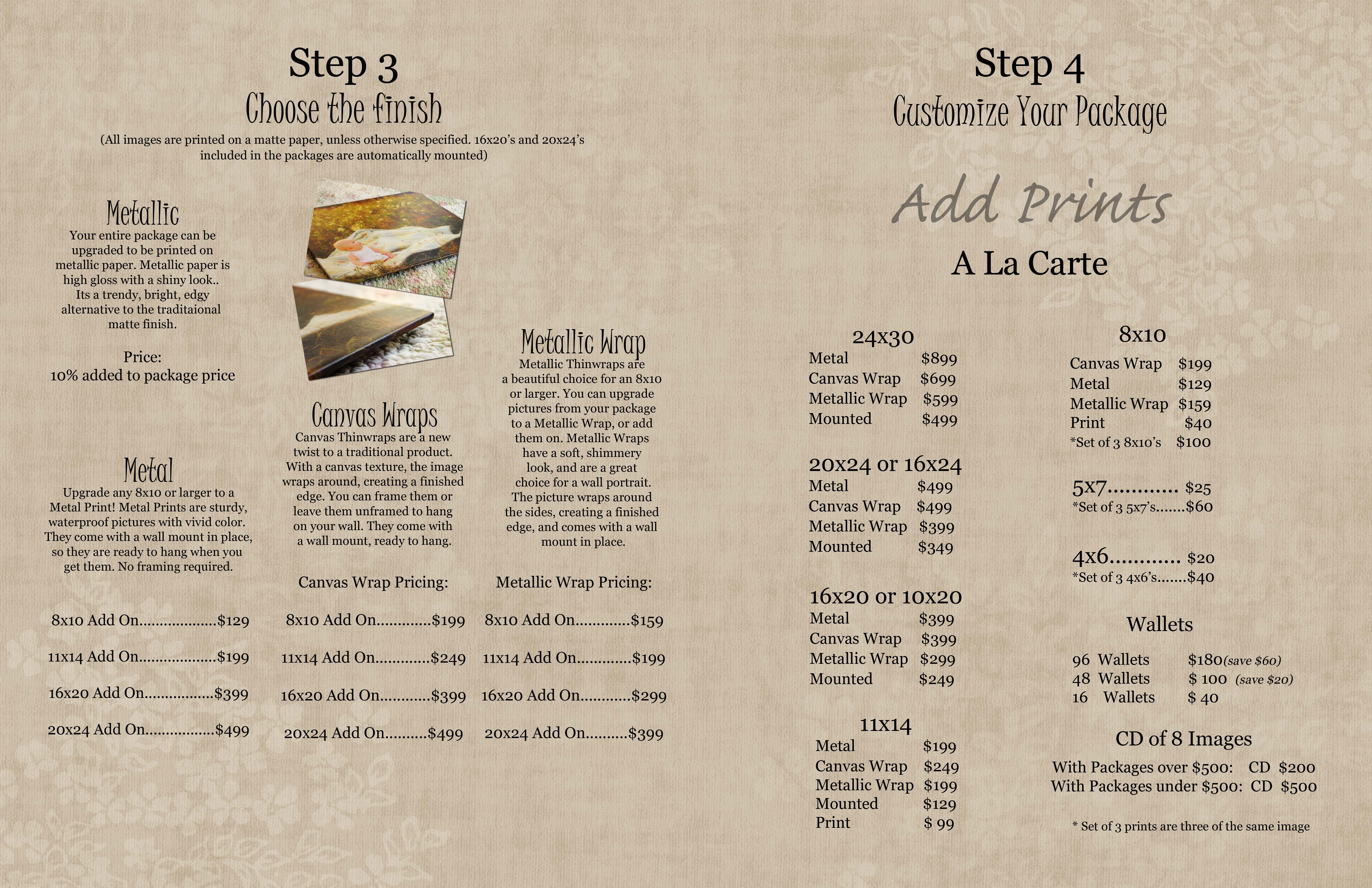 Retouching (teeth whitening, blemish removal, stray hair removal, etc.) is included in the price of any picture except a proof. Proofs are only cropped and color corrected. You can make any picture in your package black and white or sepia for no extra charge.